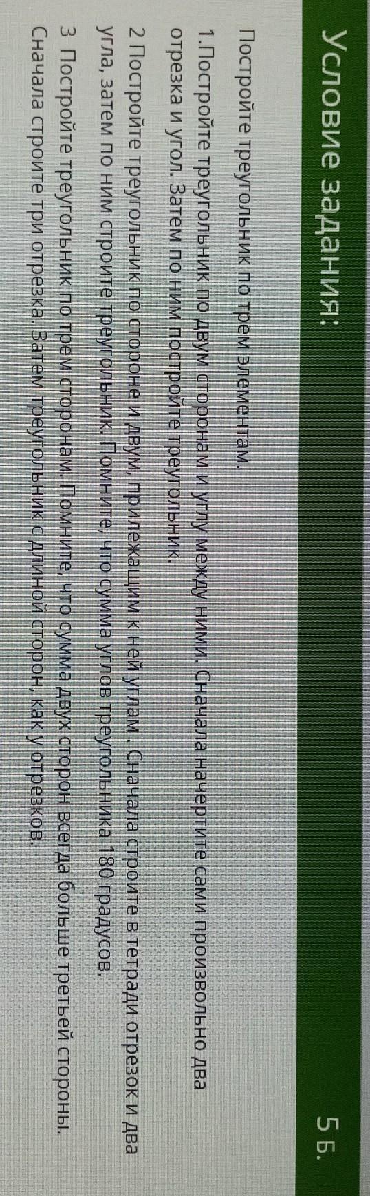 Длинное построение (немного мятое) - по двум углам и стороне. Ещё две фотки с построениями есть, сделай вопрос – прикреплю. Больше 5 изображений нельзя