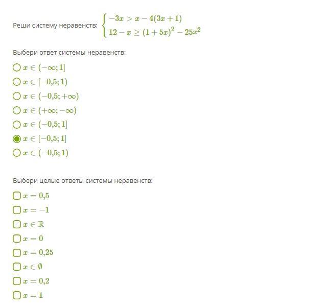 {x>-0,5 ,x≤1 ответ:x∈(-0,5;1] (5) x=0 x=1 --целые решения