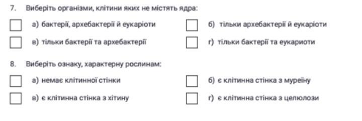 7 . а ) бактерії, архебактерії й еукаріоти