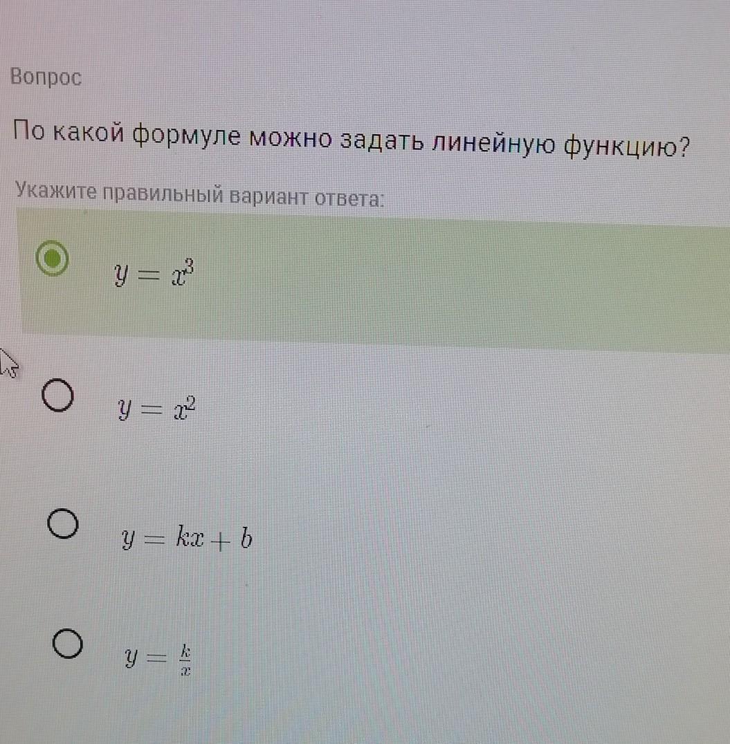 Линейная функция это функция вида y=kx+b, где k и b — любые числа