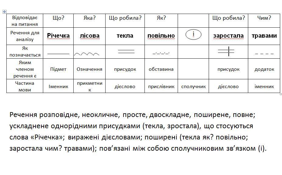 Допоможіть виконати синтаксичний розбір речення. Річечка лісова текла повільно і заростала травами