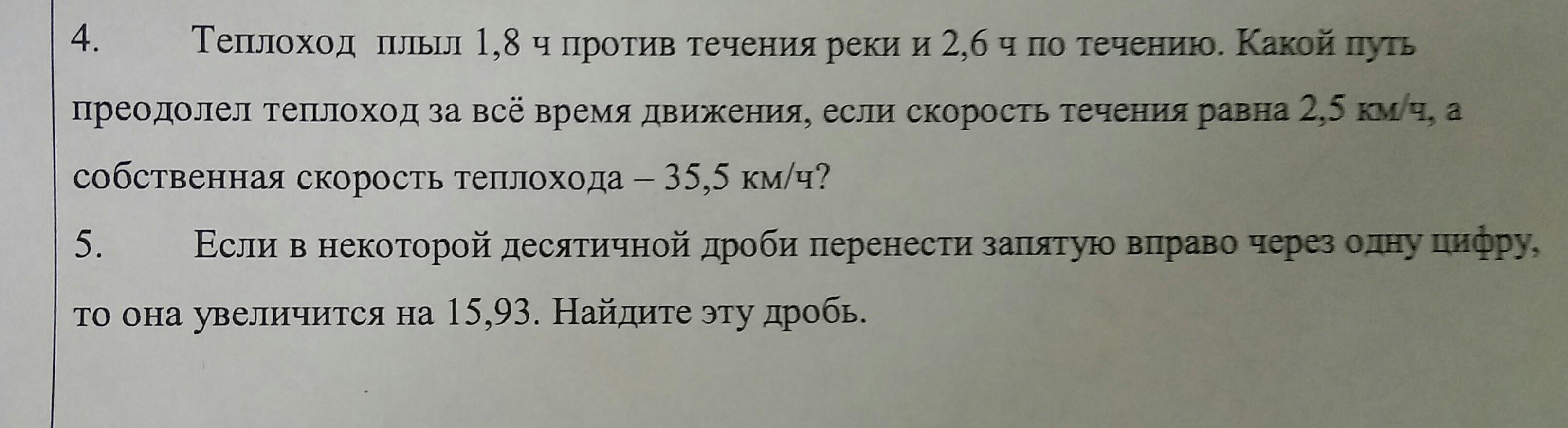 4. S по течению: v * t = 38*2,6 = 98,8 км. Скорость находишь по такому принципу: если против течения, то из скорости тела вычитаешь скорость течения, а если по течению, то прибавляешь.