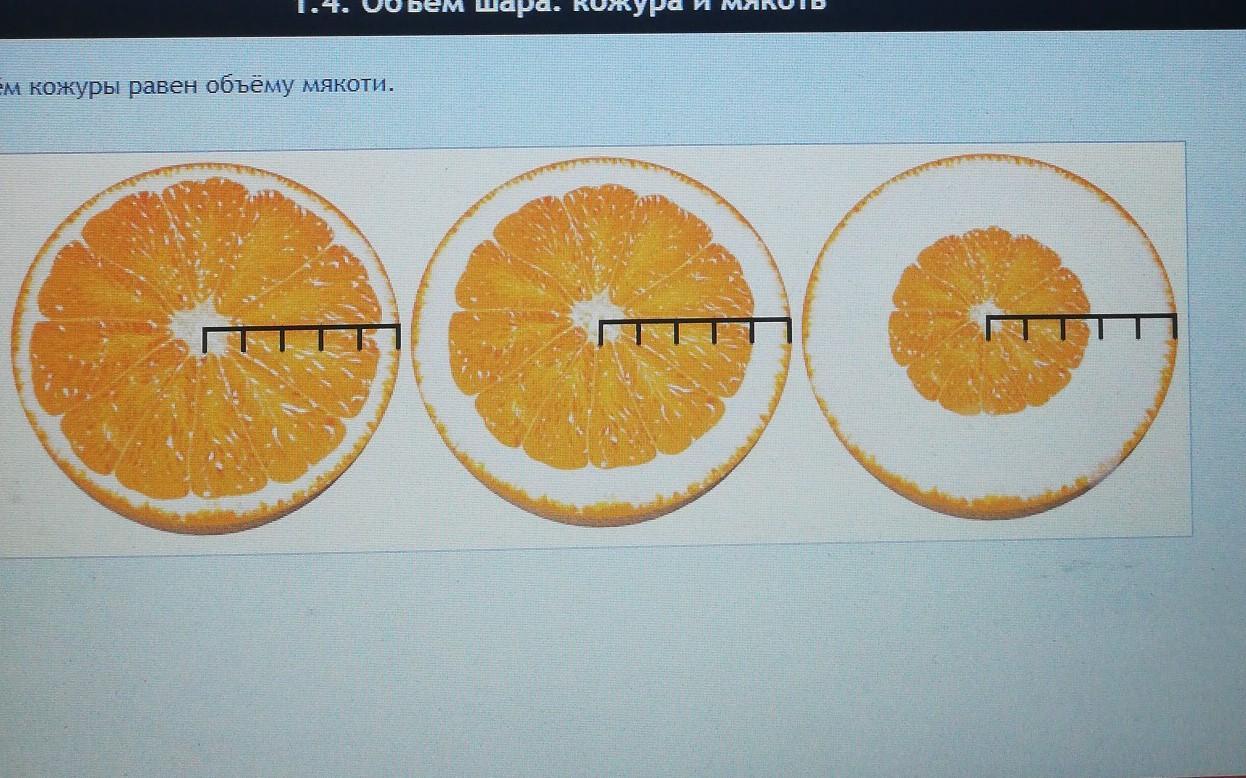 4.Укажите апельсин, в котором объем кожуры равен объёму мякоти