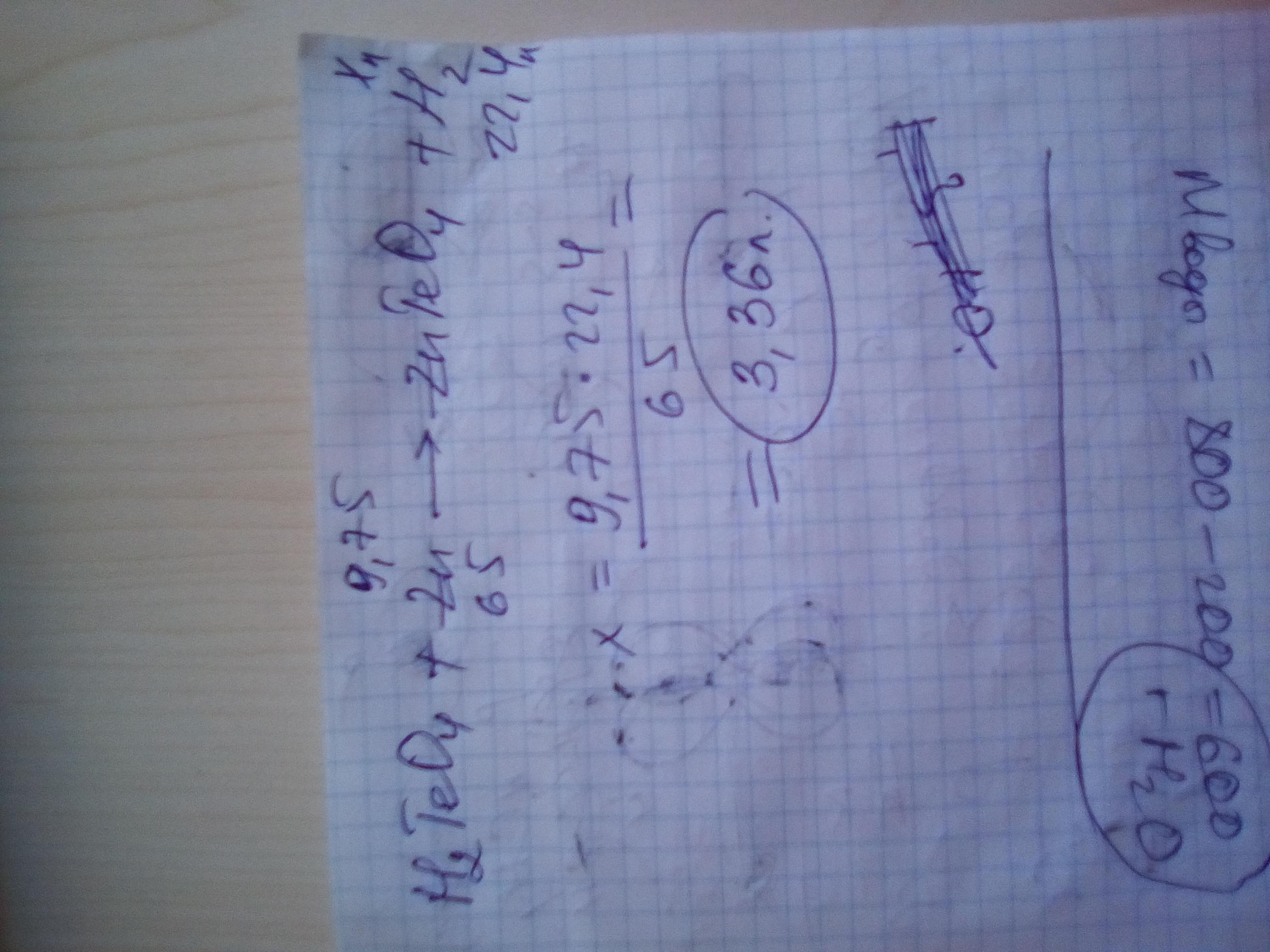 Вычисли объём водорода, который выделится в результате взаимодействия 9,75 г цинка с раствором H2TeO4.