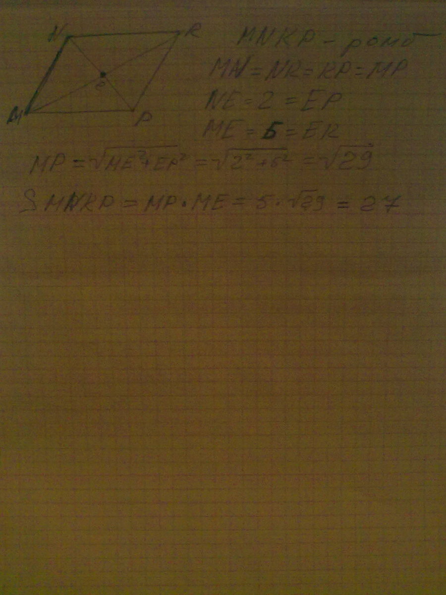 В равнобедренном параллелограмме MNKP: МР || NK, MN = KP, NE перпендикулярна MP, NE = 2, EP = 5. Найти площадь MNKP.