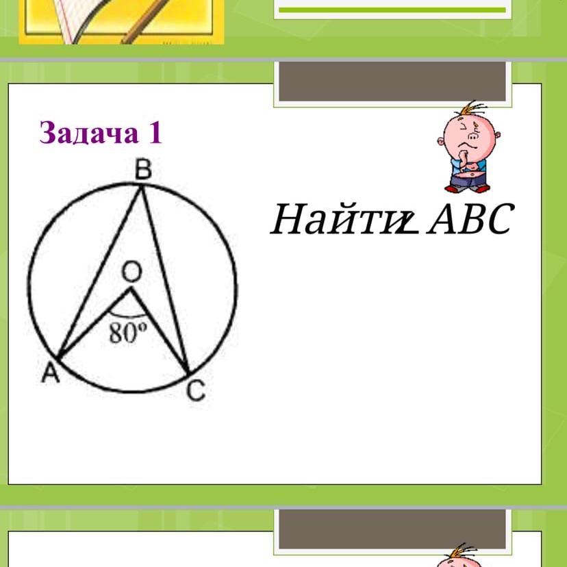 угол АОС равен 80 , следовательно дуга АС равна 80 , а дуга АБ и БС по 140 , значит угол АОБ равен 140 . Треугольник АОБ равен 180 -140 =40:2= 20 .