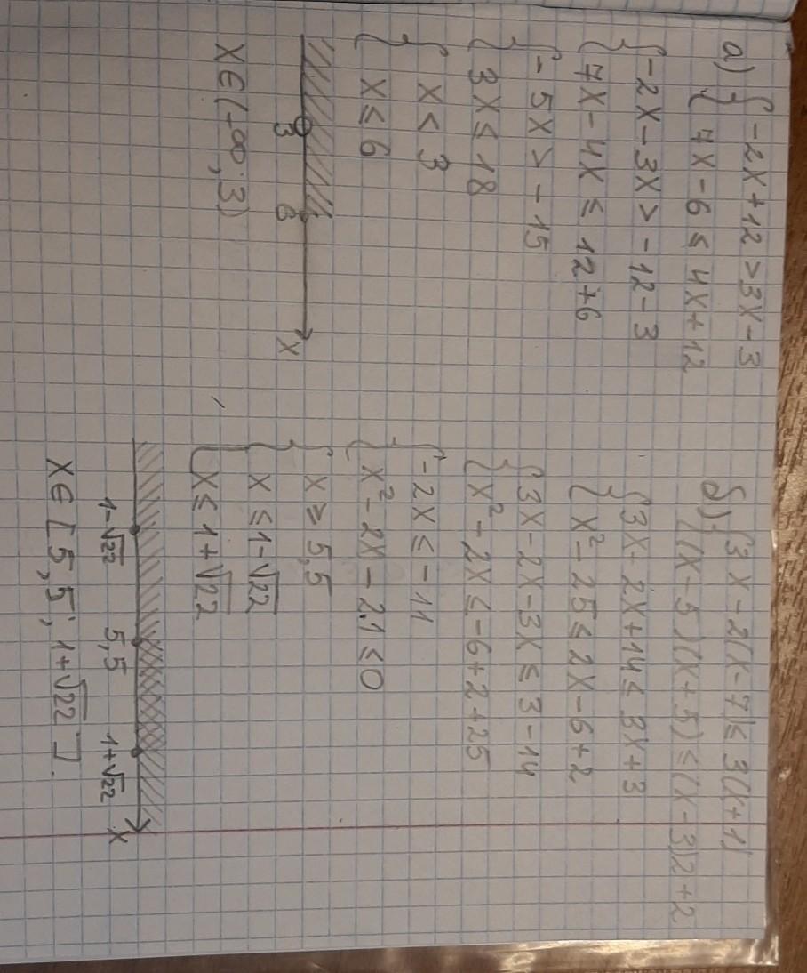 б) 3x – 2(x – 7) ≤ 3(x +1),