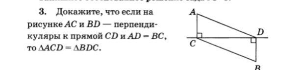 Докажите, что если на рисунке АС и BD - перпендикуляры к прямой CD и AD = вс, то Треугольник BCD = треугольнику BDC.