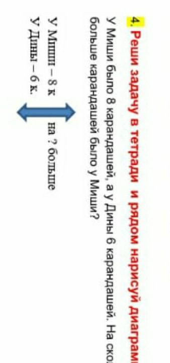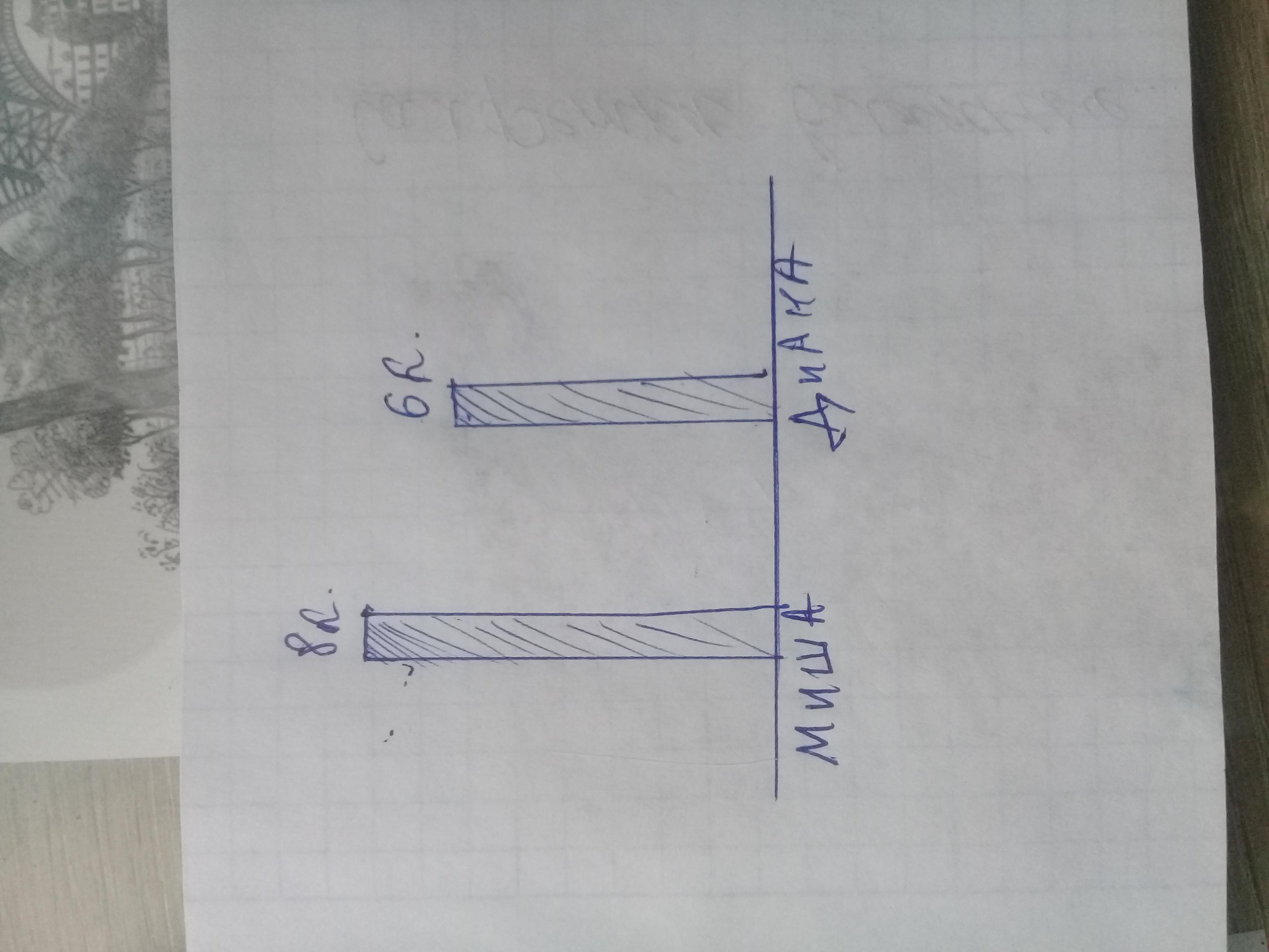 Нарисуй диаграмму как две линии тянущееся вверх, подпиши снизу линий что это Миша и Диана. У Миши линия длиннее. На конце линий вверху напишу у кого сколько карандашей.