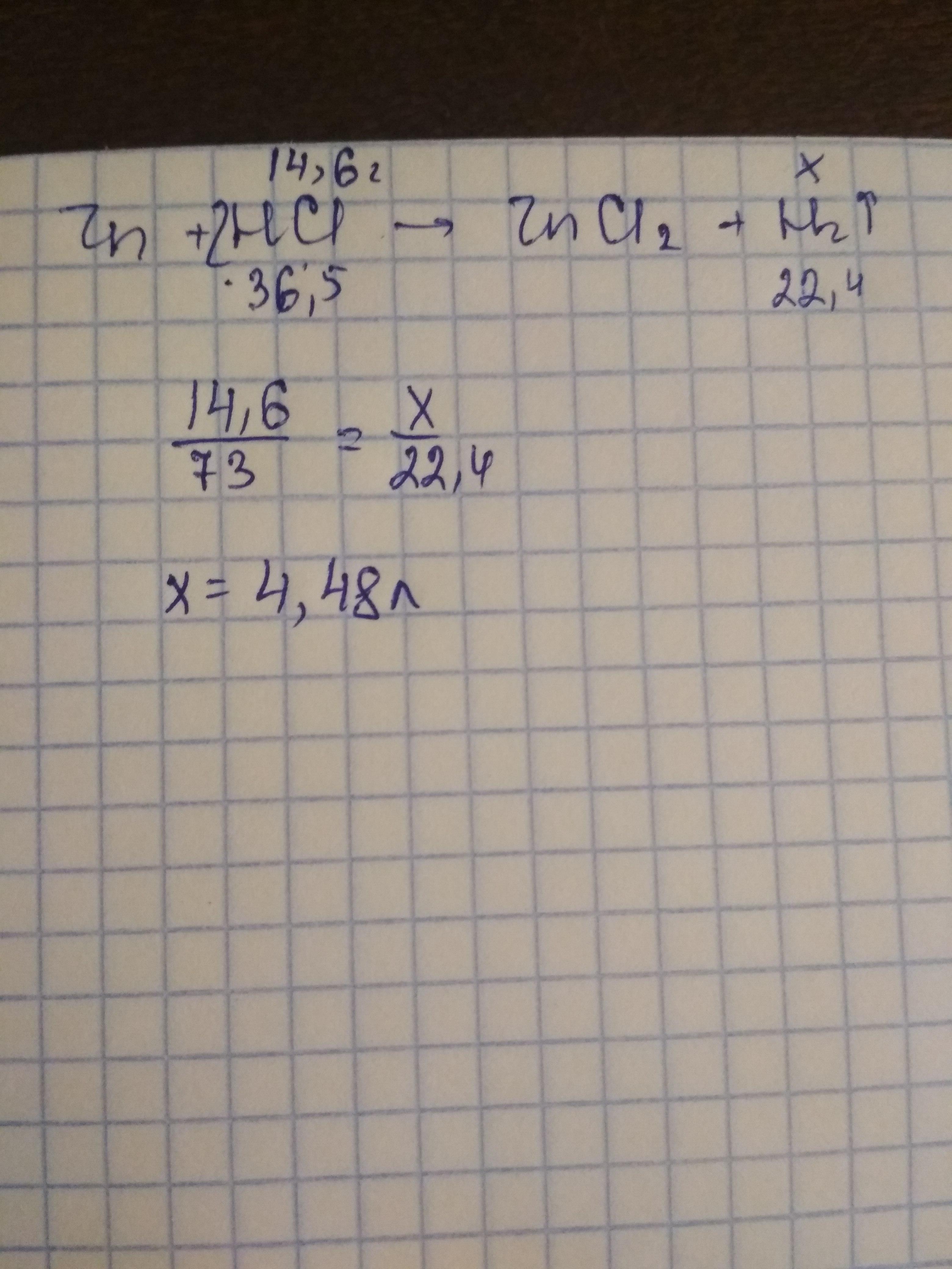 Какой объём водорода (н.у.) может быть получен при взаимодействии соляной кислоты массой 14,6 г с цинком