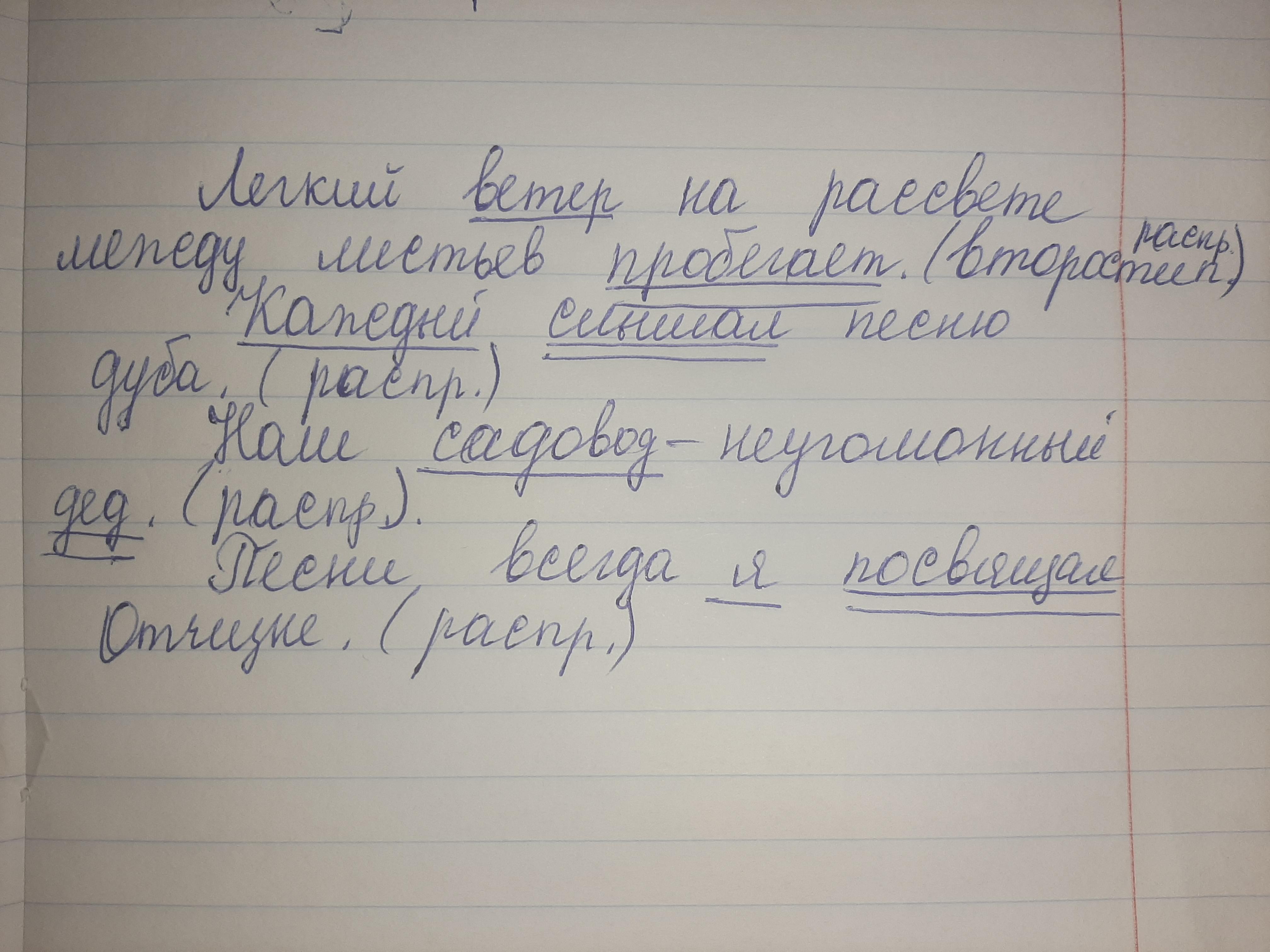 Запишите в тетради грамматическую основу предложений и укажите какие это предложения по наличию второстепенных членов – распространенные или нераспространенные.