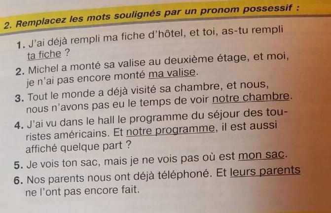 remplacez les mots soulignes par un pronom possessif. Помогите пожалуйста. 20 баллов ;{