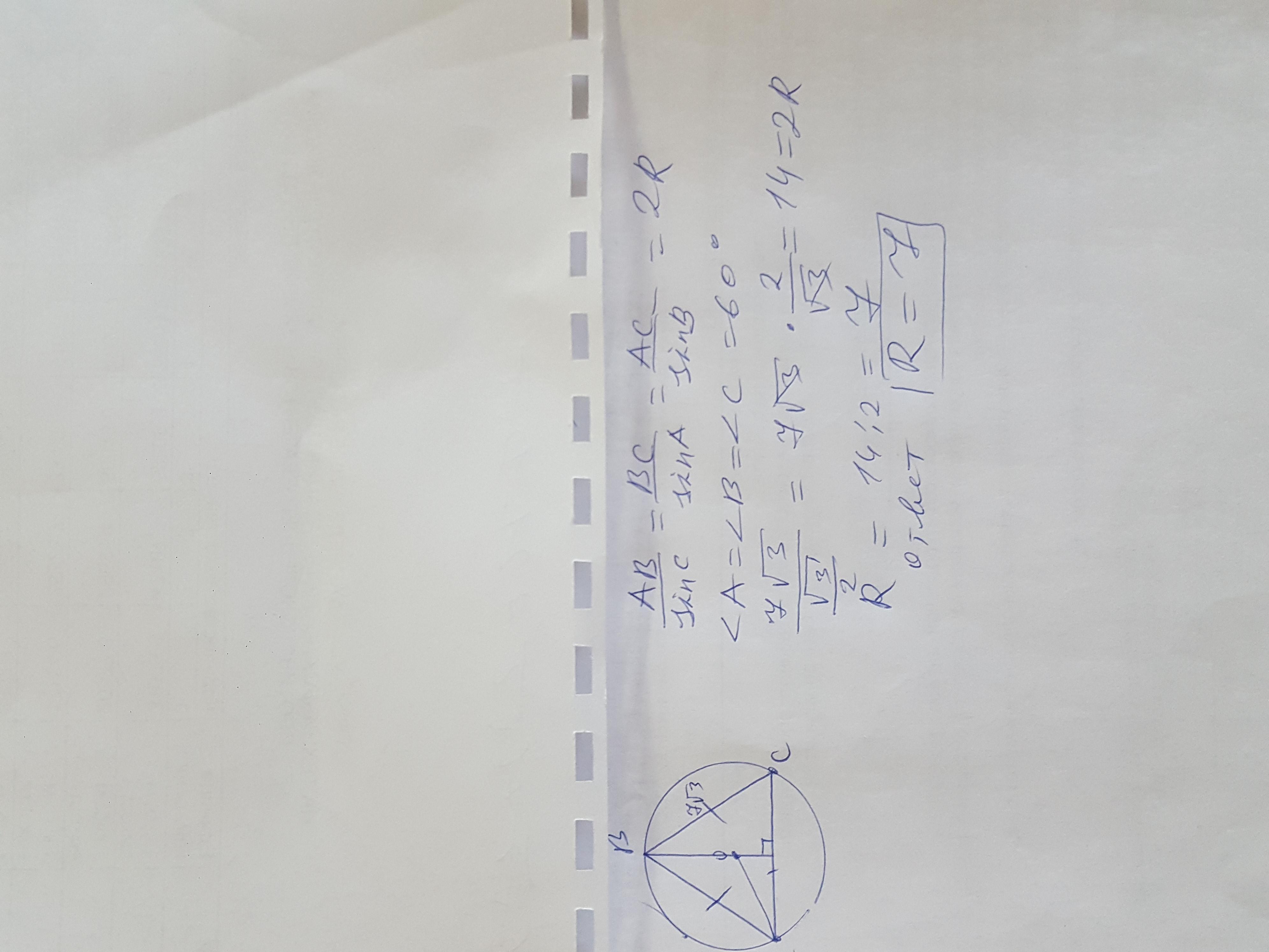 Вычисли радиус окружности, описанной около равностороннего треугольника, если его сторона равна 7 3–√ см.