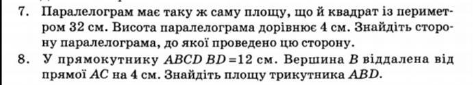 Щодо умови в 7, там написано знайти сторону проведену до сторони, я так розумію що тут помилка, бо має бути *знайти сторону до якої проведена ця висота, або я не розумію завдання*.