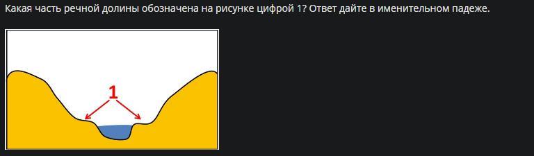 Какая часть речной долины обозначена на рисунке цифрой 1? Ответ дайте в именительном падеже.