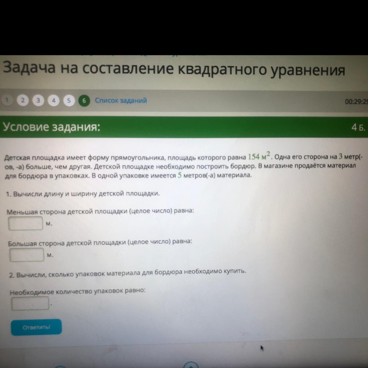 детская площадка имеет форму прямоугольника,площадь которого равна 154м^2