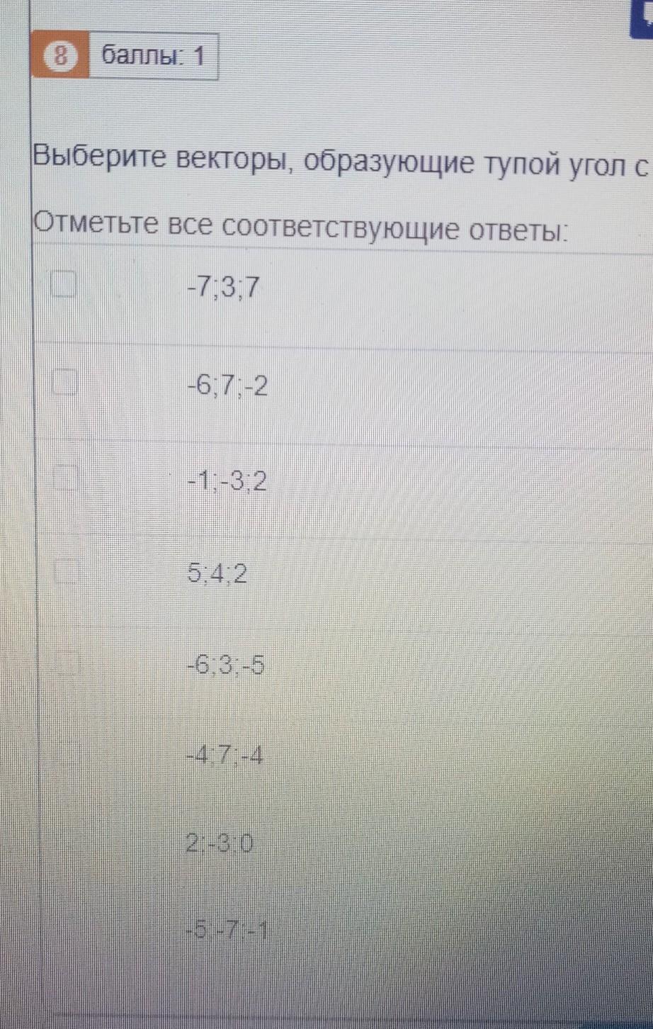 Выберите векторы, образующие тупой угол с векторном a(-5;-4;-7)