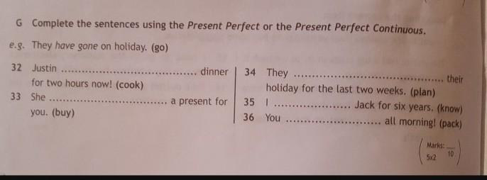 32) has been cooking 33) has bought 34) have been planning 35) have known 36) have been packing