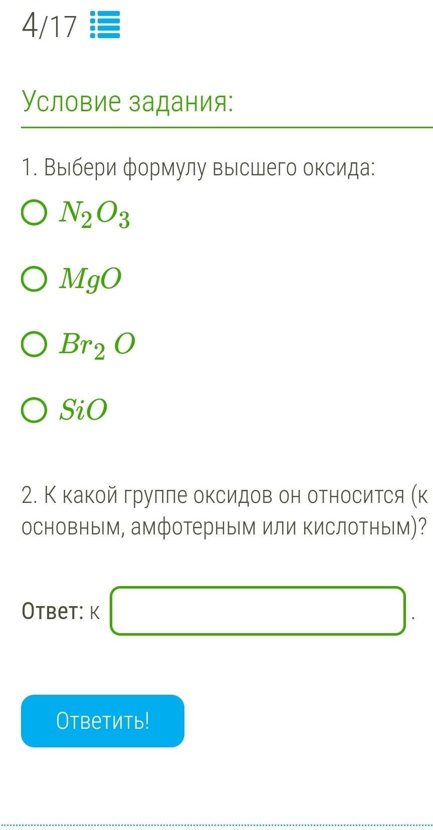 Высший оксид - это оксид вещества с наивысшей возможной для этого элемента степенью окисления. Магний находится в наивысшей степени, поэтому он подходит. Так как он оксид металла (не амфотерного) , то он основный оксид