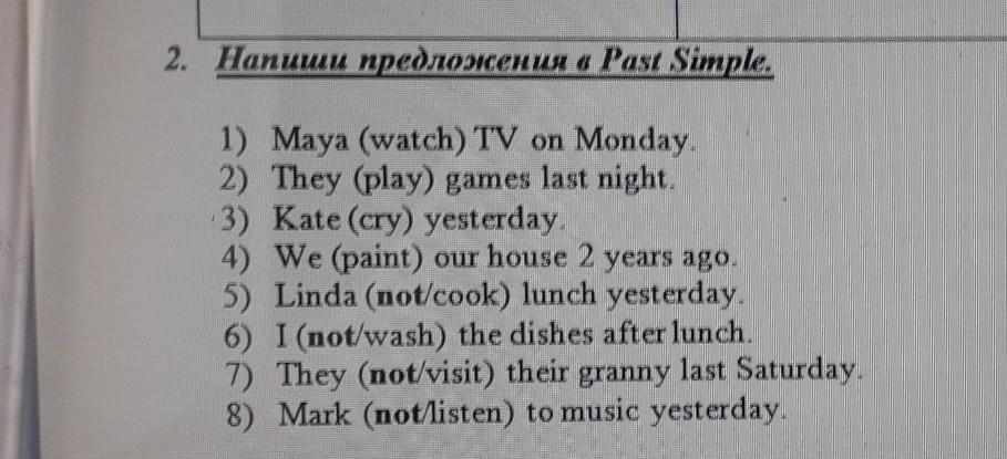 Чтобы образовать Past Simple, нужно употребить вторую форму глагола. У большинства глаголов она образуется путем добавления окончания “-ed” к инфинитиву. Если глагол заканчивается на “e“, добавляется просто “d“, если глагол заканчивается “y“, то она заменяется на “i” перед