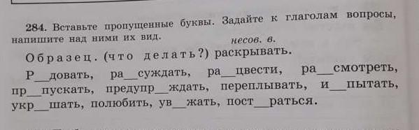 Радовать, рассуждать, расцвести, рассмотреть, пропускать, предупреждать, переплывать, испытать, украшать, полюбить, уважать, постараться,