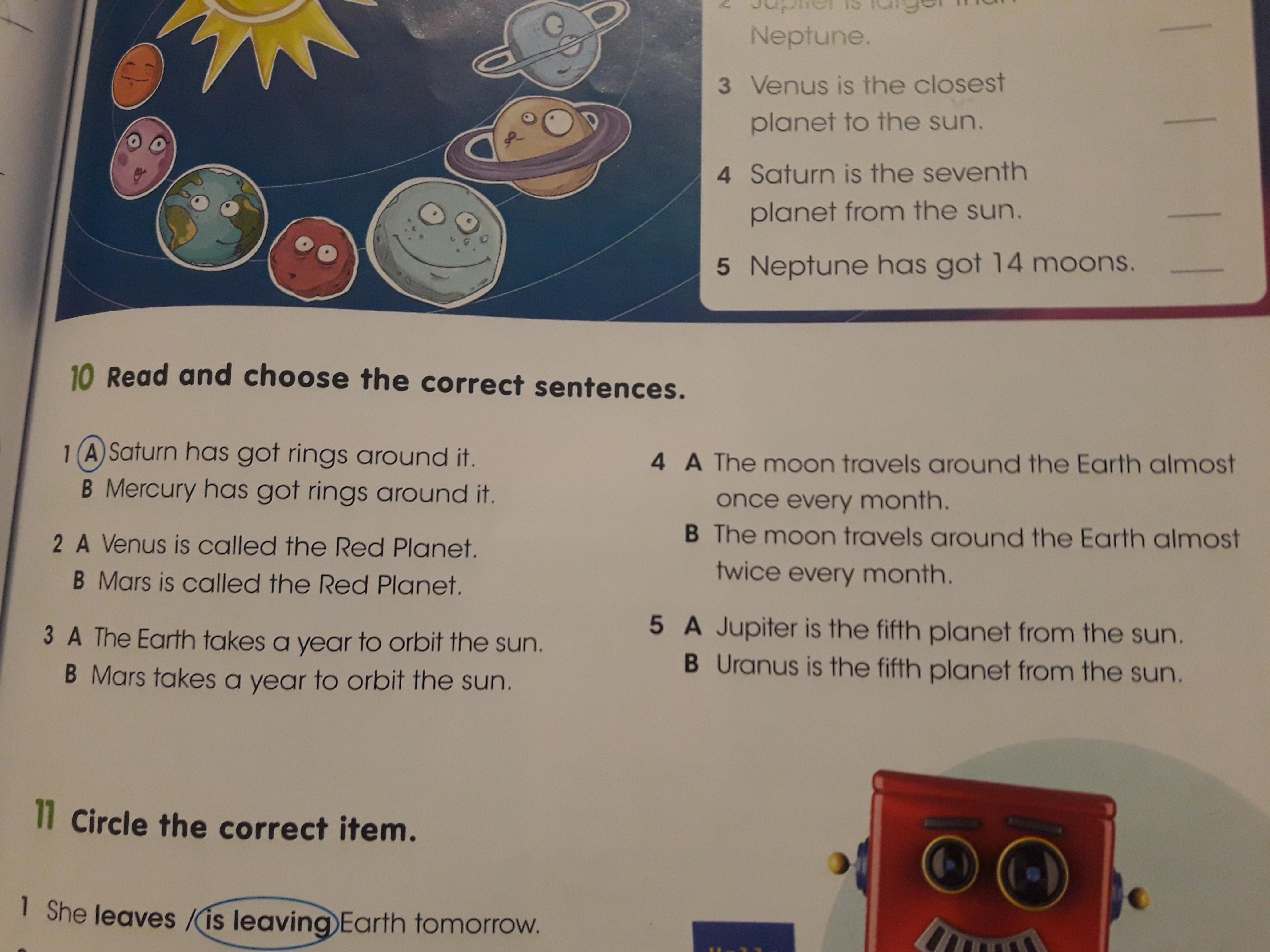В) Mors takes a year to oroit the sun. - Марс целый год избегает солнца.