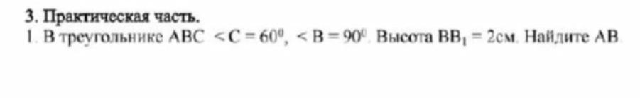 Т.к. сторона, лежащая против угла в 30 равна половине гипотенузы, то ВВ1=1/2АВ
