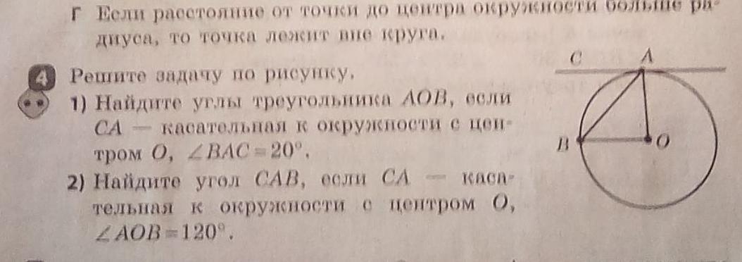 CA касательная к окружности-следовательно угол CAO=90 градусам