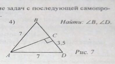 1)Рассмотрим треугольник ACD, тк по условию CD=3.5=1/2*7, то угол А=30(катет, лежащий против угла в 30 градусов = половине гипотенузы), следовательно угол D=180-(90+30)=60 градусов.