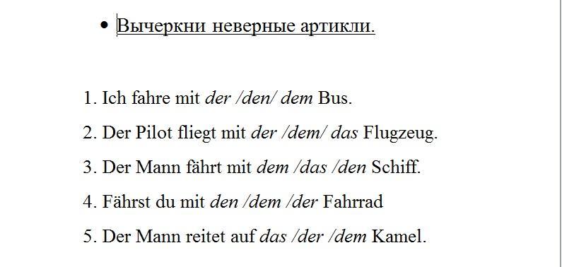 1. Пишу верный артикль, остальные вычеркнуть