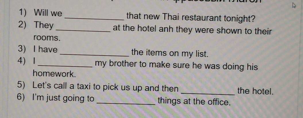 Помогите пожалуйста! Заполнить пропуски, используя правильную форму глагола check и правильный фразовый глагол. Взорание спасибо.
