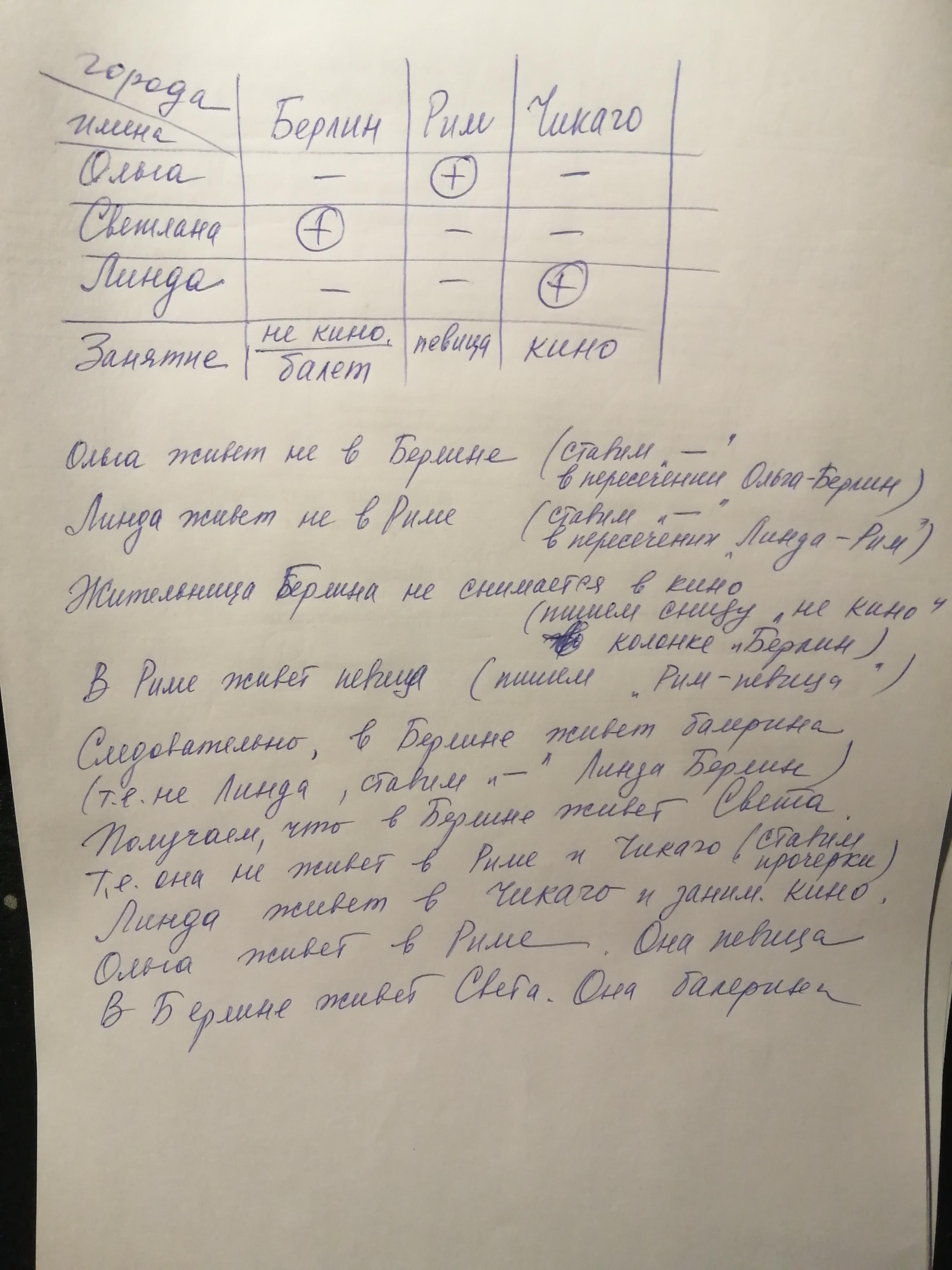 Ольга живет не в Берлине, а Линда — не в Риме;