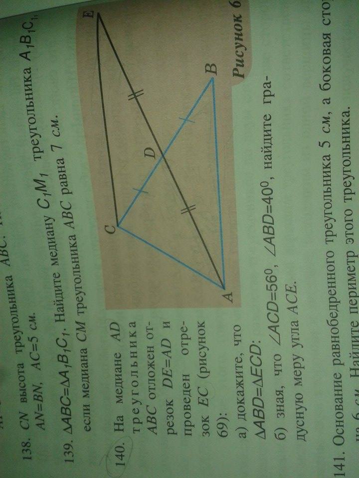2)<АВД=<ЕСД=40* как накрестлежащие при параллельных прямых АВ и СЕ и секущей ВС
