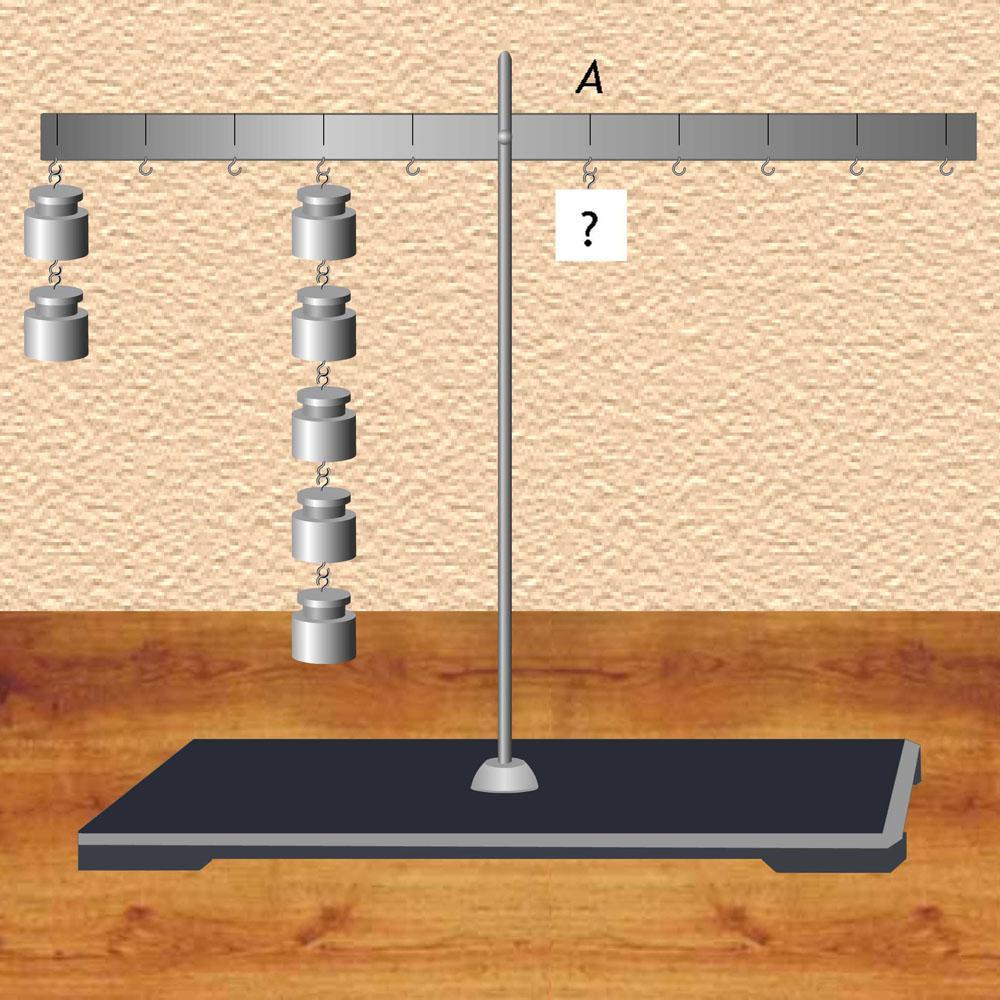 Укажите какое количество однотипных грузов нужно подвесить в точку A, чтобы уравновесить левое плечо рычага.