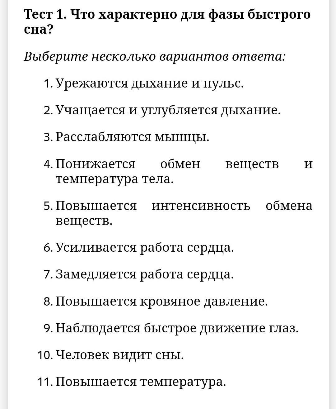 9) быстрое движение глаз