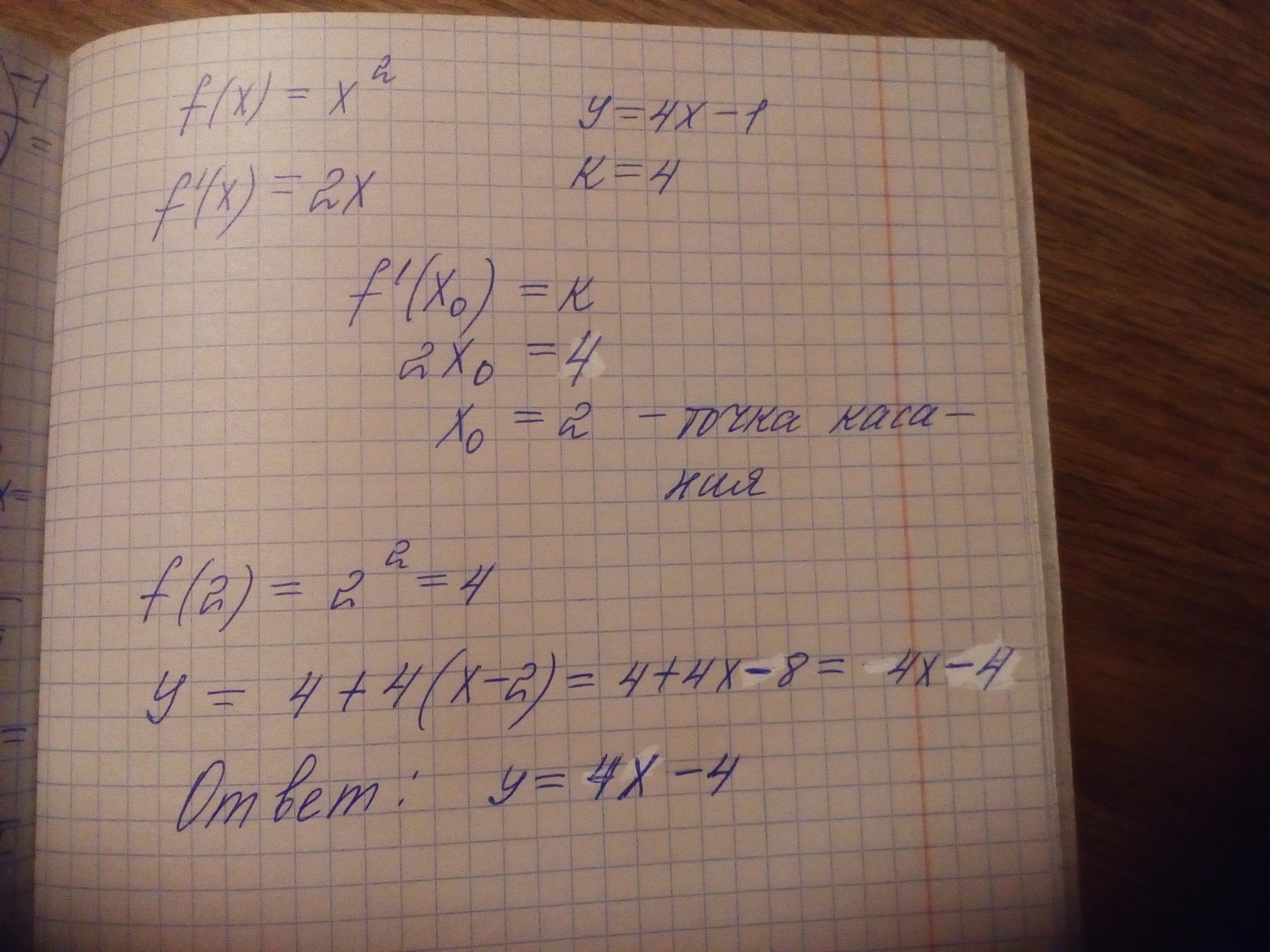Складіть рівняння дотичної до графіка функції f(x)=х^2 (х в квадрате) яка паралельна прямій у = 4*х - 1 (СРОЧНО ДАЮ 68 БАЛЛОВ !!!!!!!!!)