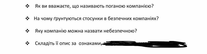3.• вам забороняють розповідати дорослим, що з вами відбувається, оголошують все, що стосується компанії, «таємницею»;