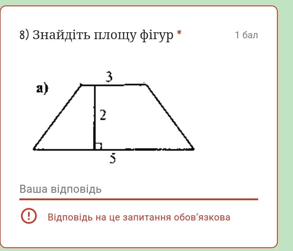 S = (3 + 5)/2 * 2 = 8/2 * 2 = 8 (ед²).