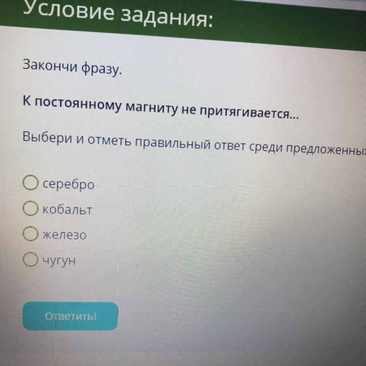 К постоянному магниту не притягивается 1 вариант (серебро)