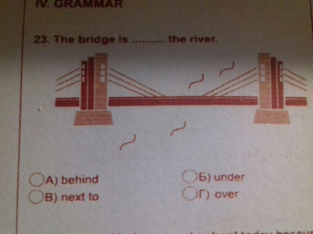 2. over (over - над, under - под, behind и next to - рядом с). Здесь подходит только over.