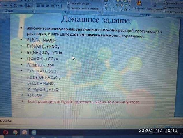 закончите молекулярные уравнения возможных реакций протекающих в растворах и запишите соответсвующие им ионные уравнения.