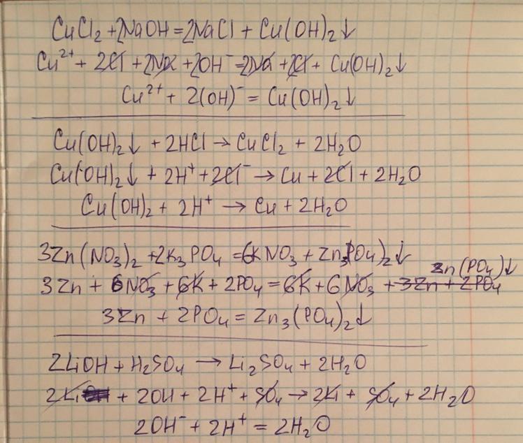 Написать для каждого уравнения молекулярное, полное ионное и сокращенное уравнения: