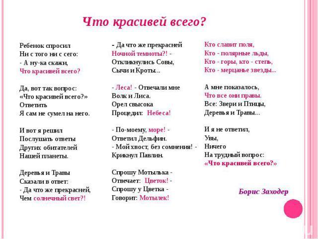 3)Можно ли найти единственно правильный ответ на вопрос ребёнка в начале стихотворения?