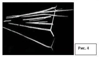 На рис. 4 представлена фотография треков α частиц, двигавшихся в камере Вильсона. Рассмотрите фотографию и ответьте на вопросы. Ответы обоснуйте.