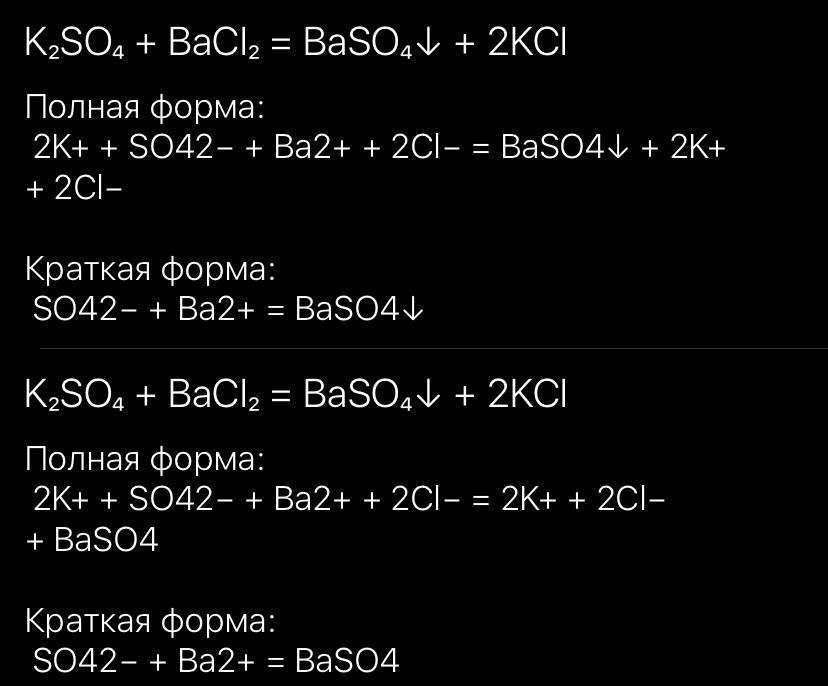 BaCl2 + K2SO4 = BaSO4 + 2KCl