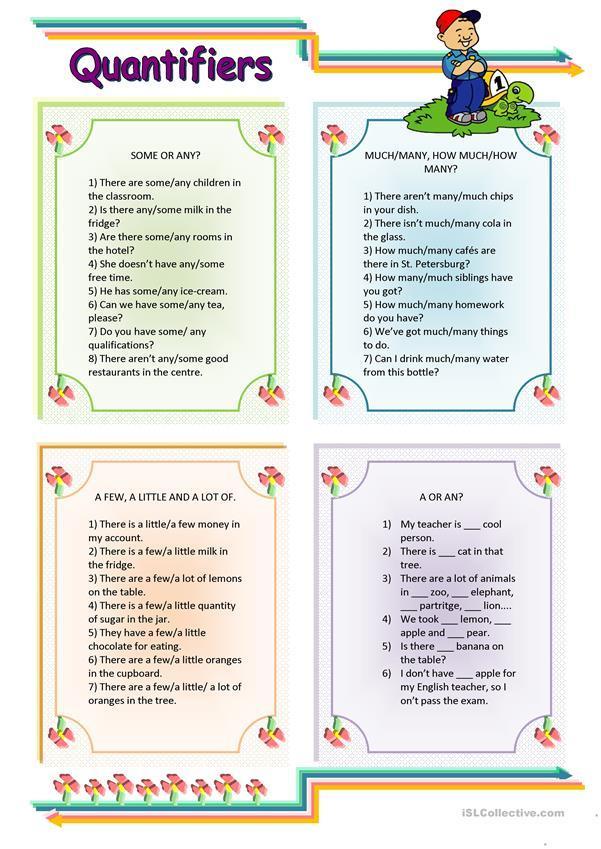 большая просьба ,еще дать ответ на A FEW , A LITTLE AND A LOT OF / A OR AN?