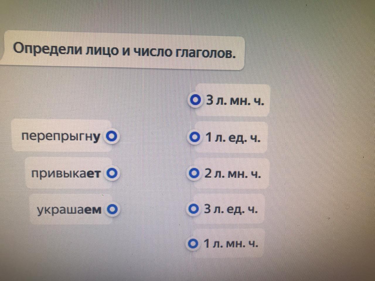 Перепрыгну (1лицо, ед. ч), привыкает (3 лицо, ед. ч),украшаем (2 лицо, мн ч)