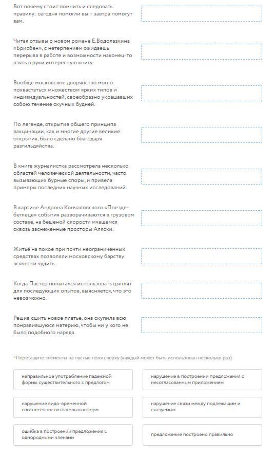 Установите соответствие между грамматическими ошибками и предложениями, в которых они допущены: к каждой позиции первого столбца подберите соответствующую позицию из второго столбца.