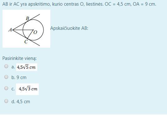 AB и AC касаются круга с центром O. ОС = 4,5 см, ОС = 9 см.
