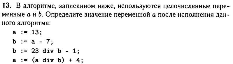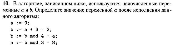 В алгоритме, записанном ниже, используются целочисленные переменные a и b. Определите значение переменной a после исполнения данного алгоритма: